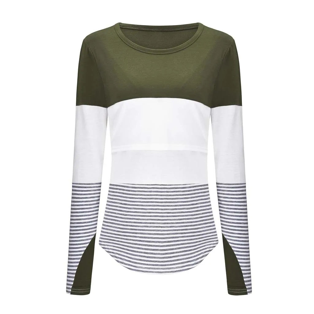 長袖のストライプ柄授乳用トップスで、マタニティ ワードローブをグレードアップしましょう。快適さとスタイルを重視したデザインで、大きくなるお腹にフィットし、授乳しやすいので、見た目も気分も最高です。